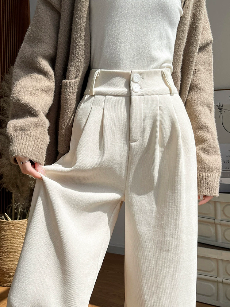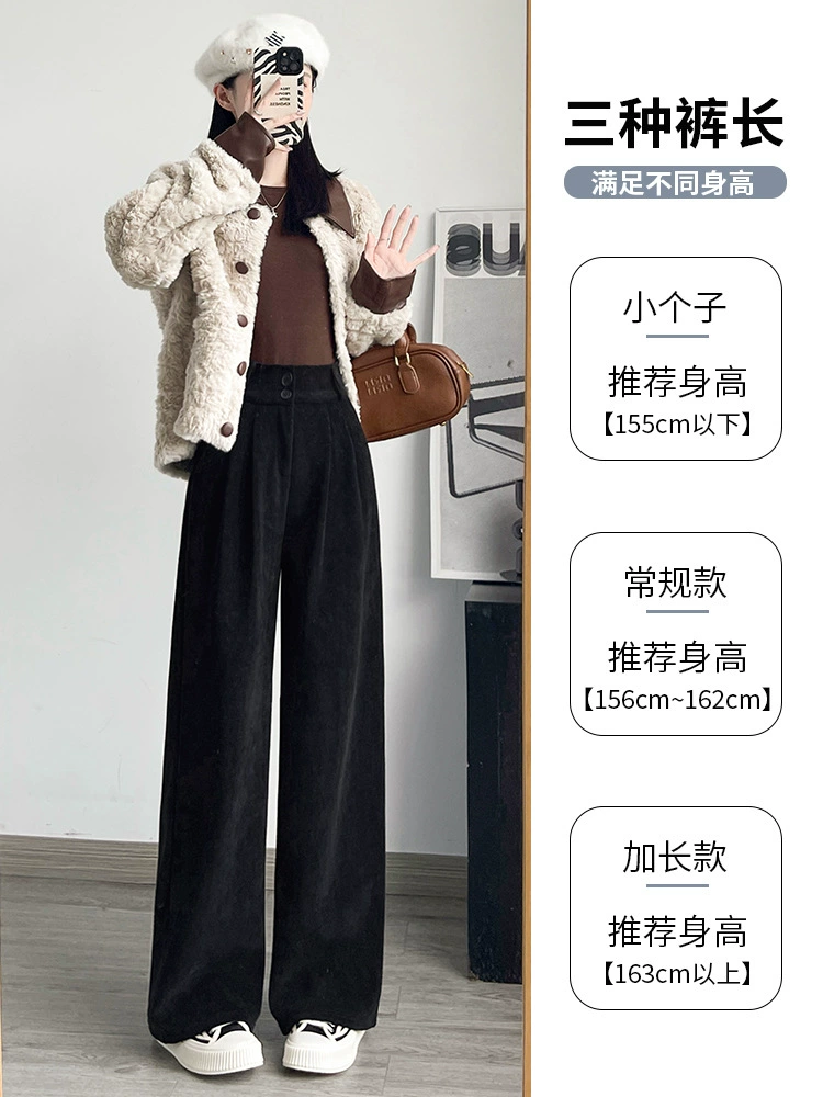 Coffee-colored corduroy wide-leg pants for women, autumn and winter 2025 new style, lined, narrow version, straight-cut, with a good draping effect, suitable for petite figures, western-style pants