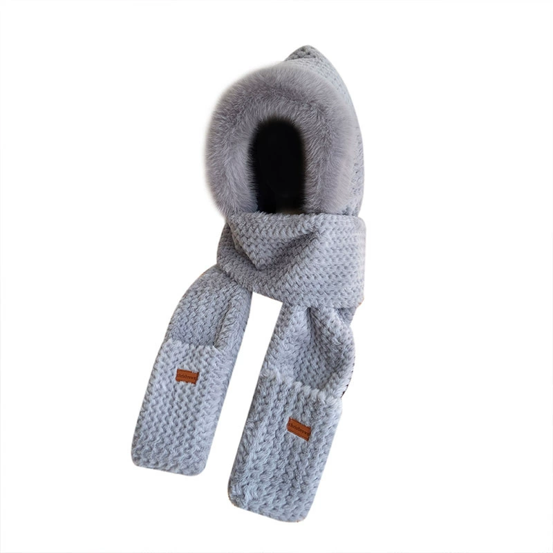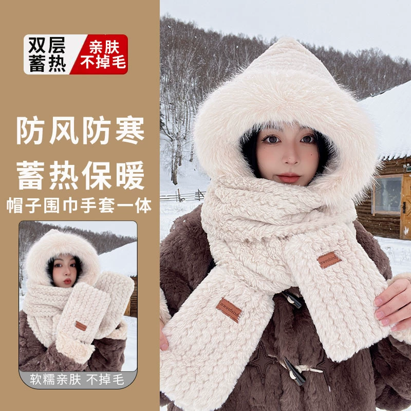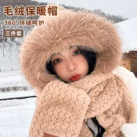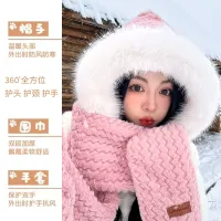 Cute pink plush hat and scarf three-piece set for women, autumn and winter earmuffs, thickened windproof and warm scarf for cycling